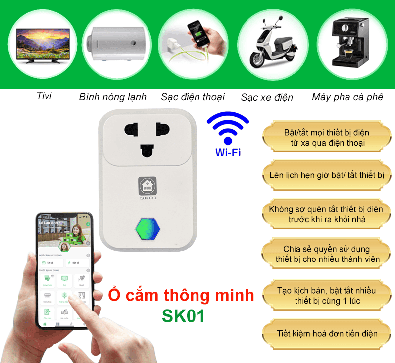 Ổ cắm thông minh Hunonic SK01│Điều khiển từ xa qua điện thoại